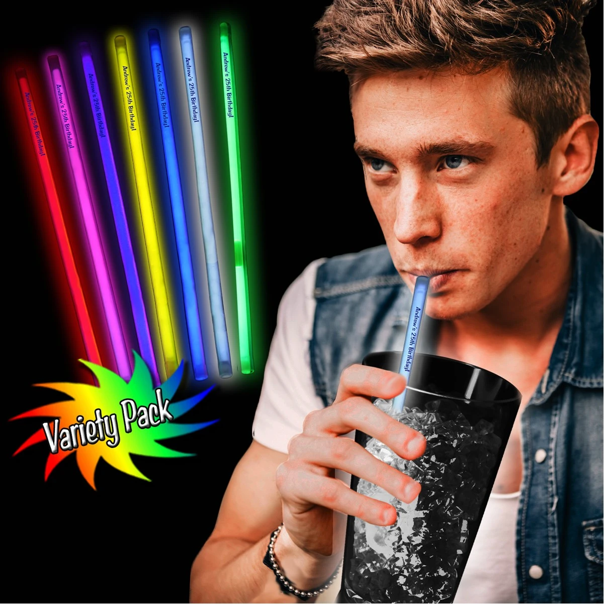 Choose from a variety of bright and fun glowing colors to accent signature drinks and promote club and bars. Our brand new Supreme glow straws are 9 inches and glow the entire length of the straw. Perfect for all kinds of evening events with a certain color scheme. Not for use with thick drinks like frozen drinks or milk shakes. One time use only. 9″ L