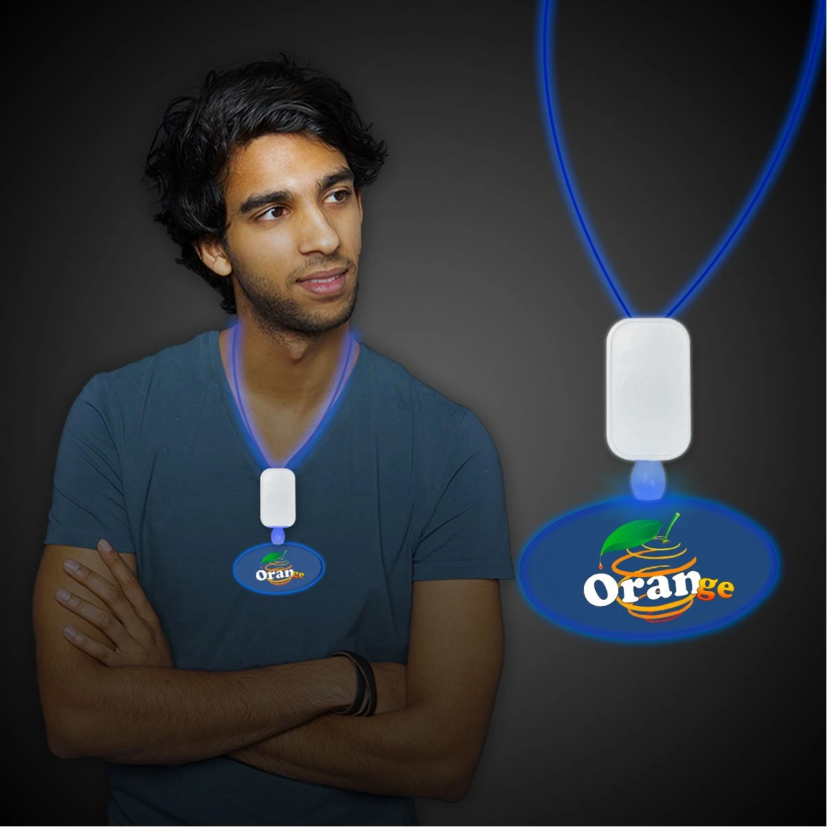Here’s a bright idea! Kick off your next party in a fun way using these extra-large LED pendant necklaces on a 32″ light up lanyard! To activate the LED lights, simply press the on/off button located on the rectangle above the pendant and select from three different light modes: fast flash, slow flash and steady on. Add an imprinted company name or logo and you’ll be ready to go.
