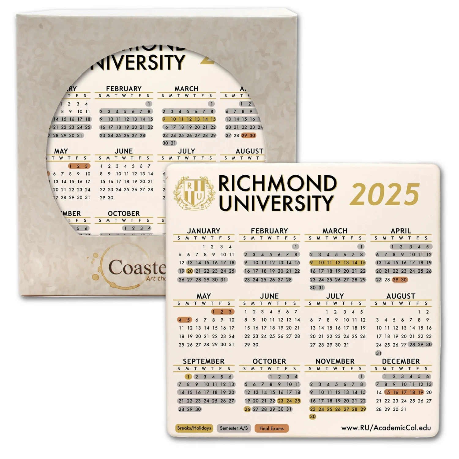 Single square stone coaster with a calendar and your message. Unlimited colors! Complies with Prop 65. 4.25″ L x 4.25″ W