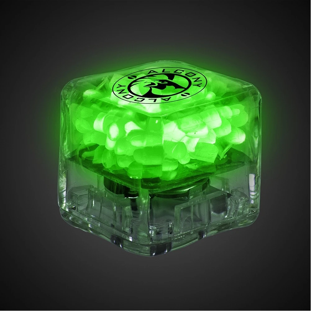 Our new and unique 1 3/8″ Green LED Ice Cubes do not have the usual on and off buttons but are liquid activated. As soon as you place them into the drink of your choice they will light up and create a fun look for your party theme. Our Liquid Activated Ice Cubes look great as water decorations in water based centerpieces, too. Perfect for bars, restaurants, special events, or at any event with any color scheme. 1 3/8″ W x 1 3/8″ H x 1 3/8″ D