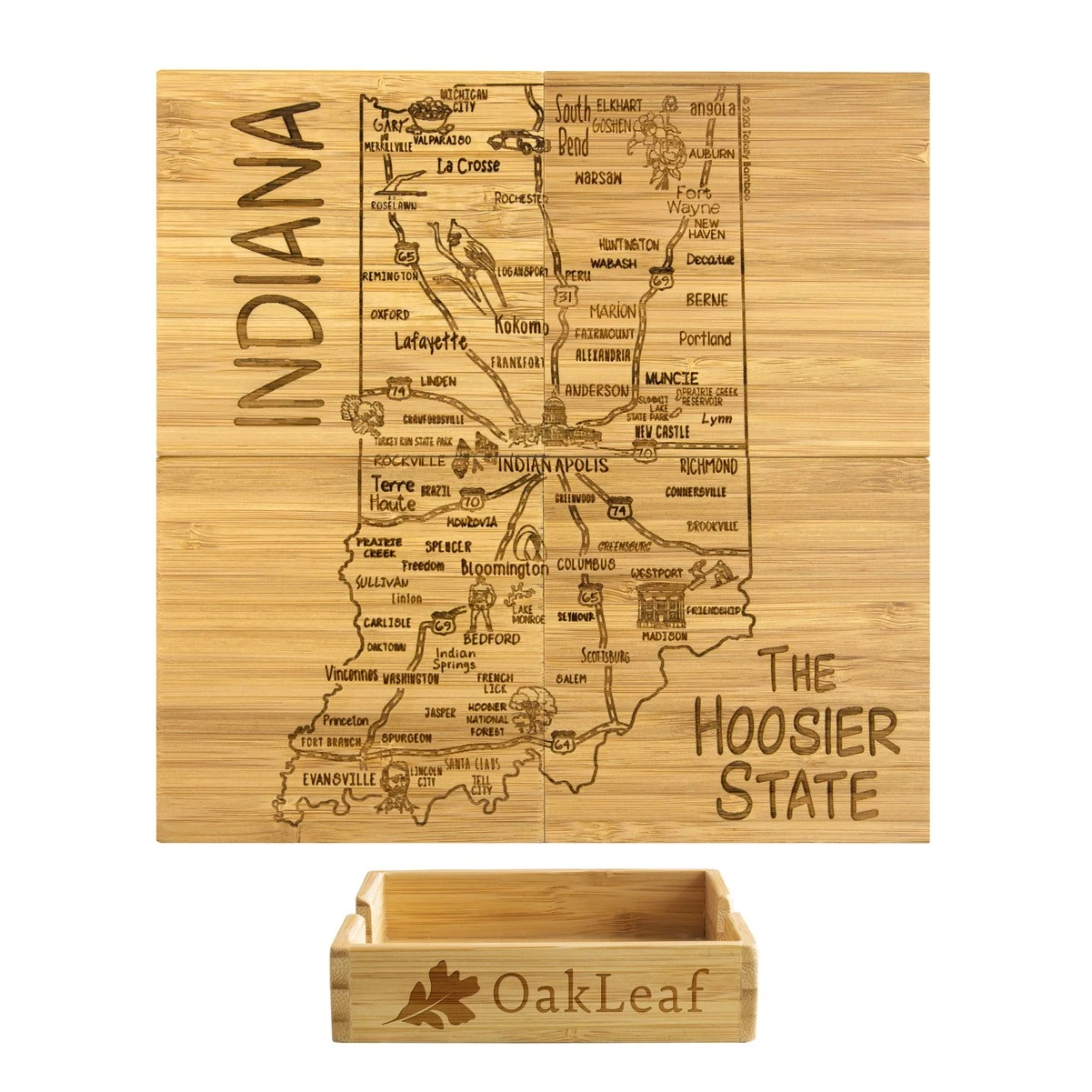 This State Puzzle Coaster Set with Case offers a natural solution for protecting tabletop. These sturdy coasters are crafted from organically-grown Moso® bamboo, an environmentally-friendly material solution that quickly re-grows once harvested. Bamboo is both lightweight & durable a perfect choice for coasters! The coaster set includes a handsome case to store coasters neatly when not in use. The coasters are easy to care for as well: simply wipe them with a damp cloth to clean. Complies with Prop 65. 4″ W x 4″ H