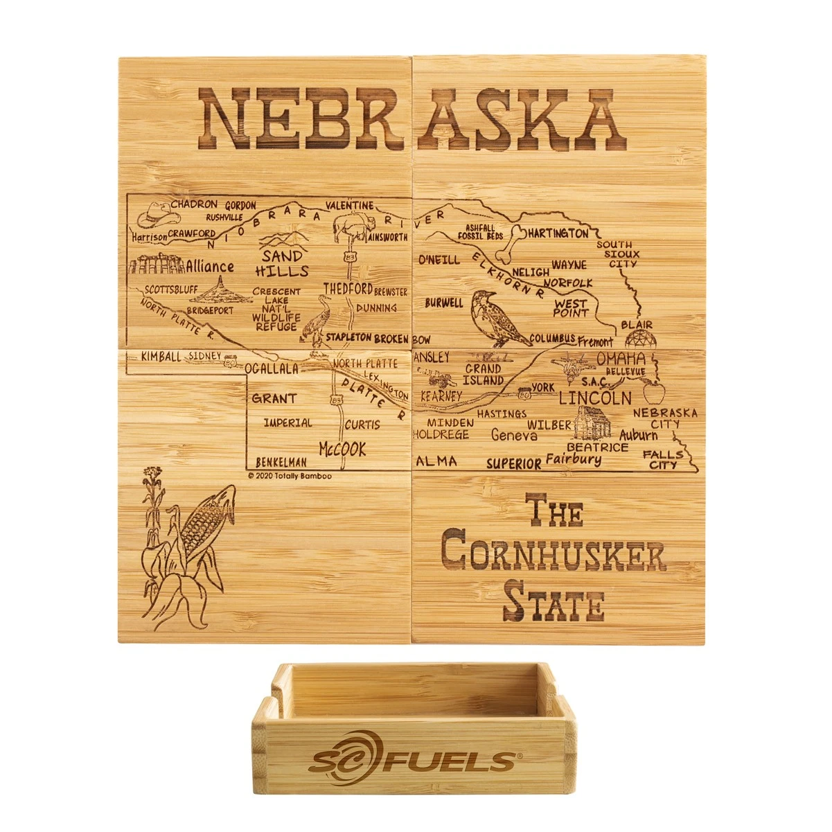 This State Puzzle Coaster Set with Case offers a natural solution for protecting tabletop. These sturdy coasters are crafted from organically-grown Moso® bamboo, an environmentally-friendly material solution that quickly re-grows once harvested. Bamboo is both lightweight & durable a perfect choice for coasters! The coaster set includes a handsome case to store coasters neatly when not in use. The coasters are easy to care for as well: simply wipe them with a damp cloth to clean. Complies with Prop 65. 4″ W x 4″ H