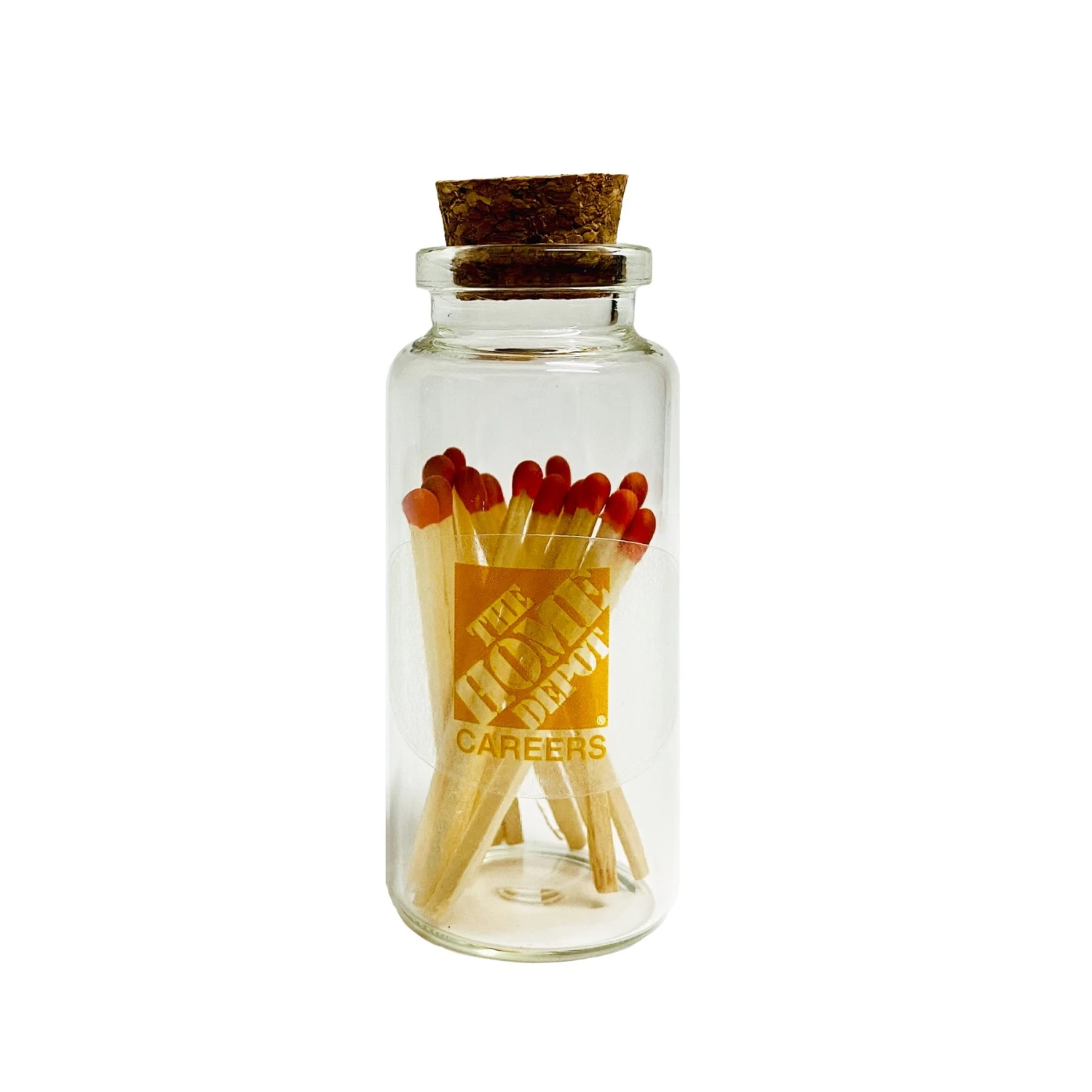 These orange tipped colored matches are the perfect accessory to compliment any candle collection. The matches come in a clear glass bottle with cork lid and striker on bottom of jar. Great to add in with any candle to create a gift set. 2.75″ L x 1.18″ W