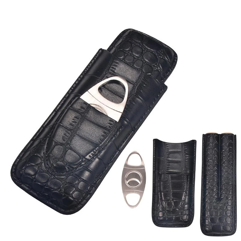 Classic leather Style and cedar wood inside with cutter. Holding 2 cigars of max length 6.3 inches. Easy to carry with your cigars when traveling. Perfect Gift For Husband, Boy friend, Groomsmen, Boss,Father, Any Cigar Lovers. 6 11/16″ L x 2 6/16″ W x 1 3/16″ H